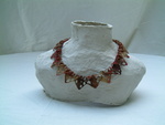 2006handbeschilderd halssieraad van katoenpapier op metaaldraad in bruinrood en goud; lengte variabel