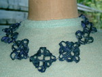 2006handbeschilderd halssieraad van katoenpapier op metaaldraad in jeans-blauw; lengte variabel