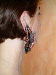 2004tyvek papieren oorbel in rood, zwart en zilverwit