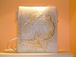2006witte leren handtas met handbeschilderde tyvek papieren versiering in goud en zilver