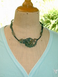 2006enkelvoudig halssieraad van handbeschilderd katoenpapier op metaaldraad in groentinten; lengte variabel