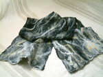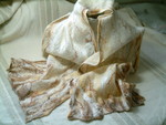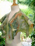 2007vilten omslagdoek met meegevilte zijdegaren vezels in groen- en bruintinten